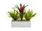 Fiery pink and bright shades of green pop against the crisp white planter of this Bromeliad and Birdsnest arrangement. Adjustable, textured leaves give the arrangement a lifelike appearance for year-round greenery. Place the contemporary planter atop coffee table books or in the bathroom for a simple burst of color.