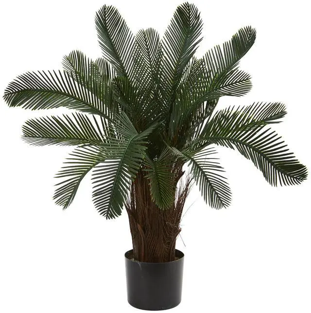 The natural looking cycas stands at two feet tall with dark fronds giving volume to this artificial plant. It's natural looking trunk completes the overall look. Add a bit of nature indoors or out with this UV-resistant tree.