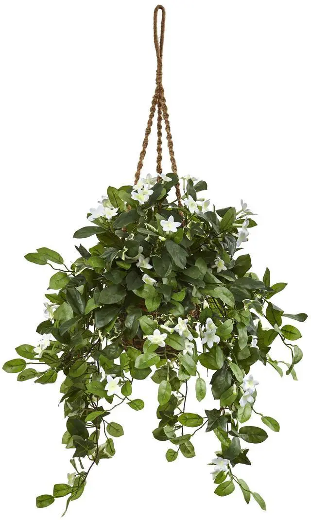 No floor space? Now you can enjoy a hanging plant without worrying about drips and spills. This faux hanging stephanotis is perfect for apartments, dorm rooms, patios, and porches and it comes ready for use. You can add a splash of green to your space in no time.