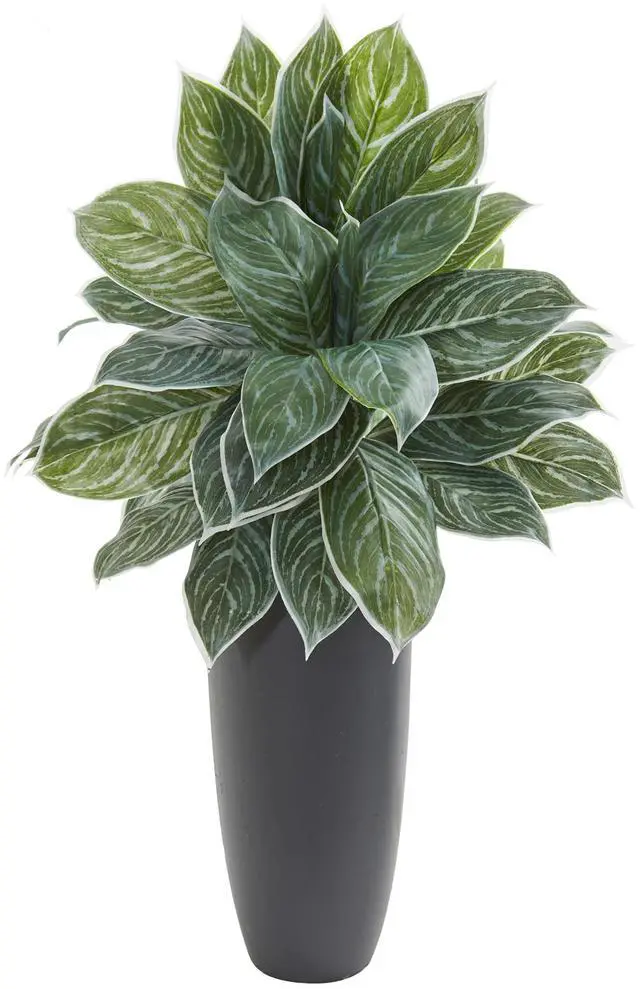 With real to the touch variegated green leaves, this aglonema artificial plant ensures a natural feel and lifelike look all year long. Its lush layered appearance will surely make a statement in your living room. Place the included planter in a seating area beside your favorite armchair and accent it with a woven brown rug for a modern tropical look.