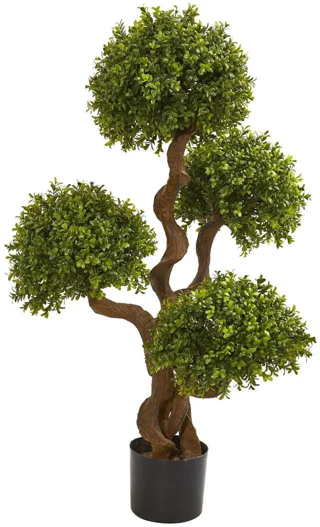 Keep up the facade and skip out on the maintenance with this artificial boxwood topiary tree! A charming 3.5 ' tall shrub tree with four perfectly shaped spheres of densely packed leaves, they're perfect for sprucing up bare doorways and corners.