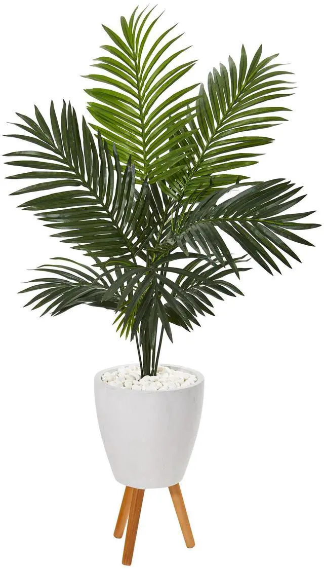 Incorporate tropical accenting with this artificial paradise palm tree featuring a lush overgrowth of brightly colored foliage, carefully crafted from the finest materials. Standing 61ö high from a white planter, this silk tree would undoubtedly compliment other tropical-inspired decor.