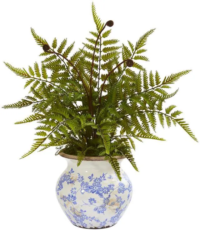 Showcase natural greenery with this artificial plant boasting a rich overgrowth of realistic looking fern foliage, made up of vibrant fronds that look real to the naked eye. Forever green, this fake plant stands 17ö high from its accompanying floral planter.