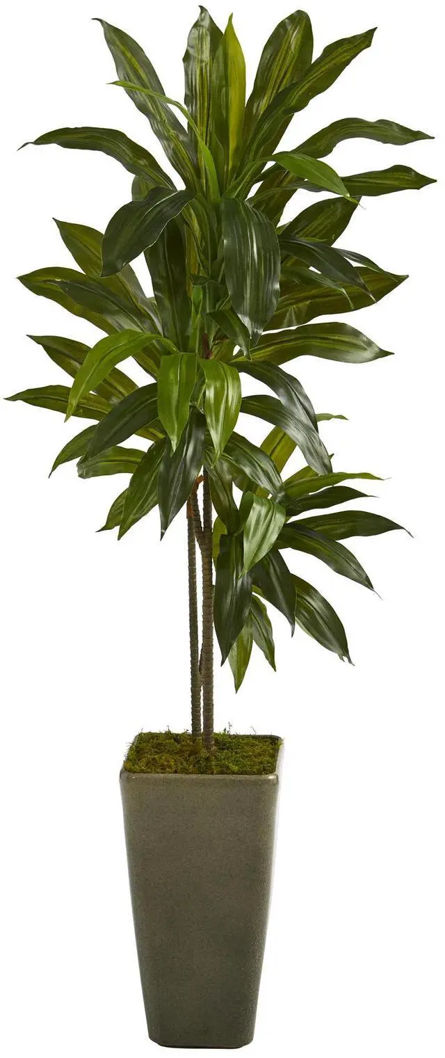 Create a lush, fresh environment throughout everyday interiors with the help of this artificial plant boasting several tiers of bright, dracaena foliage designed from the finest materials, stemming from realistic textured trunks - all of which feel real to the touch. Standing 4.5 ' high from a green planter, this tropical fake plant will effortlessly add vibrancy to a home or office space.