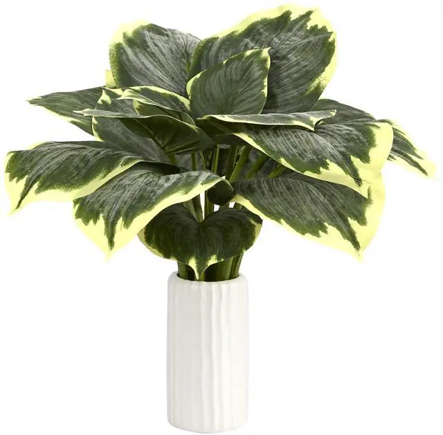 Showcase year-round greenery throughout everyday spaces with this artificial hosta plant boasting a lush overgrowth of variegated greenery that naturally fans up and outwards with a natural-like quality that makes it look real to the naked eye. Standing 19ö tall from a white planter, this indoor fake plant is perfectly suitable for either home and/or office display.