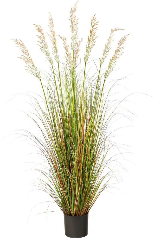 Enhance your space without the worry of upkeep with this Plum Artificial Grass Plant. Different sized grass blades form a fountain of green foliage that brings symmetry and lines to spaces in need of depth. To soften the look, yellowish textured plumes add a simple yet elegant touch. Standing 5.5 ' from a nursery planter (included in height), curate in small spaces that need more life. Perfect for awkward corners, apartments, bathrooms, bedrooms, or foyers.