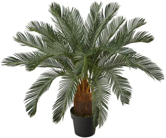 Greenify your home or office space with the help of this artificial cycas tree. Designed from the finest materials, this high-quality fake tree boasts an intricate collection of lifelike fronds that fan out with a natural quality, each detailed with little leaves in a palette of naturally occurring hues. Standing 3' tall from an accompanying nursery planter, this artificial tree would inject a sense of natural color wherever displayed.