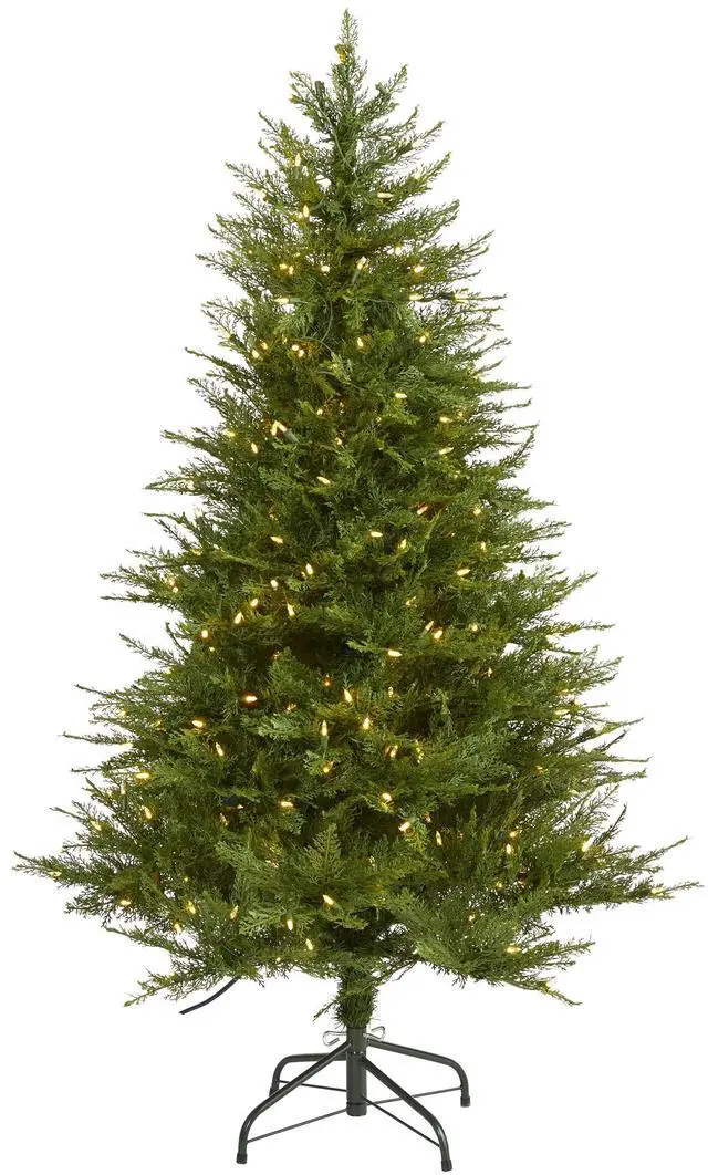 Create a picture-perfect Christmas setting in your home or office with this evergreen artificial Christmas tree. Easy and effortless, this artificial Christmas tree boasts a traditional silhouette of seasonal evergreens made up of 578 easy-to-bend branches, perfect for showcasing all your favorite holiday ornaments. Arriving pre-strung with 250 clear LED lights to eliminate unsightly tangles and carefully stabilized on a metal stand, this naturally looking 5' artificial Christmas tree will complement a range of holiday decor schemes, year after year.
