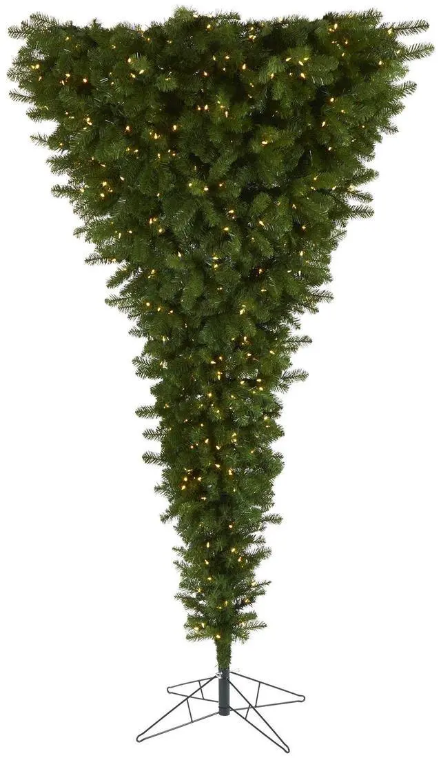Turn traditional holiday decor upside and opt for this non-so-traditional artificial upside down Christmas tree! Easy to set up and fun to decorate, this quirky Christmas tree boasts a traditional silhouette made up of 1747 easy-to-bend branches to showcase all your favorite holiday ornaments in a very unique way. Arriving pre-strung with 850 warm white (multifunction) LED lights to eliminate unsightly tangles and carefully stabilized on a metal stand, this creative 8' upside down artificial Christmas tree will undoubtedly be a popular focal point all throughout the holidays.
