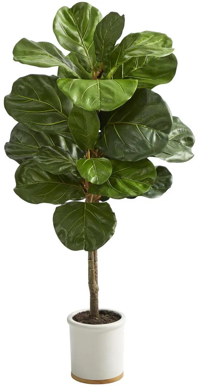 Create a natural sense of greenery in your home or office this vibrant artificial tree designed with oversized fiddle leaf fig leaves in glossy, verdant hues that look incredibly lifelike, sitting atop slender, stabilized steams. A year-round (faux) favorite amongst interior decorators, this artificial fiddle leaf fig tree stands 3.5 ö high from a white ceramic planter and would easily provide year-round freshness to any space it inhabits.
