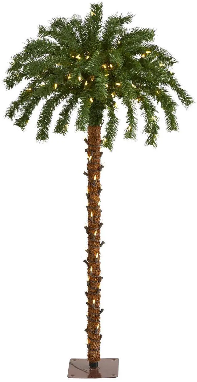 If you're looking to implement a little fun into your holiday Christmas decor why not opt for this festive artificial Christmas Palm Tree. Intricately designed to mimic the beauty of a realistic palm tree, this tropical-inspired artificial Christmas tree features 54 realistic looking tips, illuminated throughout with 150 clear, pre-strung LED lights to eliminate unsightly tangles. Carefully stabilized on a wooden pole and metal base, this 4' artificial Christmas palm tree will undoubtedly create a unique Christmas atmosphere all season long.