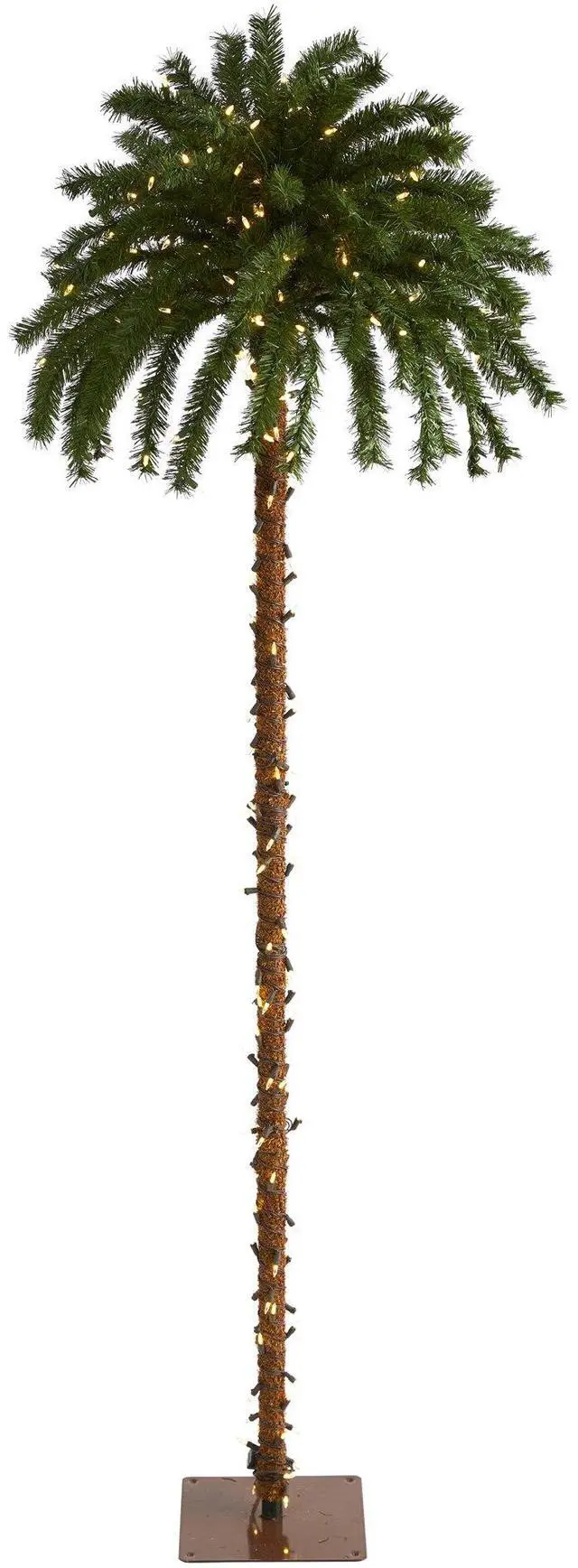 If you're looking to implement a little fun into your holiday Christmas decor why not opt for this festive artificial Christmas Palm Tree. Intricately designed to mimic the beauty of a realistic palm tree, this tropical-inspired artificial Christmas tree features 94 realistic looking tips, illuminated throughout with 300 clear, pre-strung LED lights to eliminate unsightly tangles. Carefully stabilized on a wooden pole and metal base, this 7' artificial Christmas palm tree will undoubtedly create a unique Christmas atmosphere all season long.