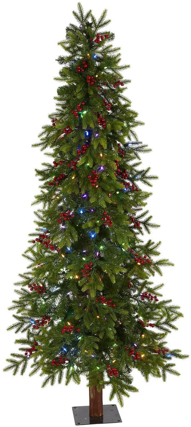 Get your home into the Christmas spirit this season with the help of this artificial Christmas tree. Easy to set-up and entirely maintenance-free, this realistic looking artificial Christmas tree boasts a traditional silhouette of seasonal foliage, made up of 415 bendable branch tips, handsomely accented throughout with faux holly berries that look incredibly lifelike. Arriving pre-strung with 250 color changing LED lights, it also features 8 different light options (including Twinkle, Bursts, and Fade) to create a true holiday glow wherever displayed. Carefully stabilized on a metal stand, this evergreen 6' tall artificial Christmas tree will create a picture-perfect holiday setting, year after year.