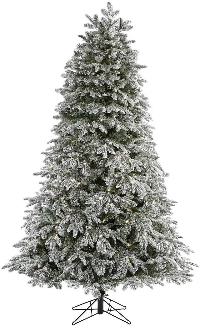 Evoke a winter-inspired Christmas this holiday with the help of this flocked artificial Christmas tree. Easy to build and entirely maintenance-free, it boasts a traditional silhouette of seasonal evergreens, made up of 1455 easy-to-bend branches for showcasing all your personalized ornaments - fully flocked with faux snow to create a picture-perfect setting. Arriving pre-strung with 700 clear LED lights, it also features 8 different light options (including Twinkle, Bursts, and Fade) to create a true holiday glow wherever displayed. Carefully stabilized on a metal stand, this enchanting 7' tall flocked artificial Christmas tree will undoubtedly be a focal point throughout the holidays, year after year.