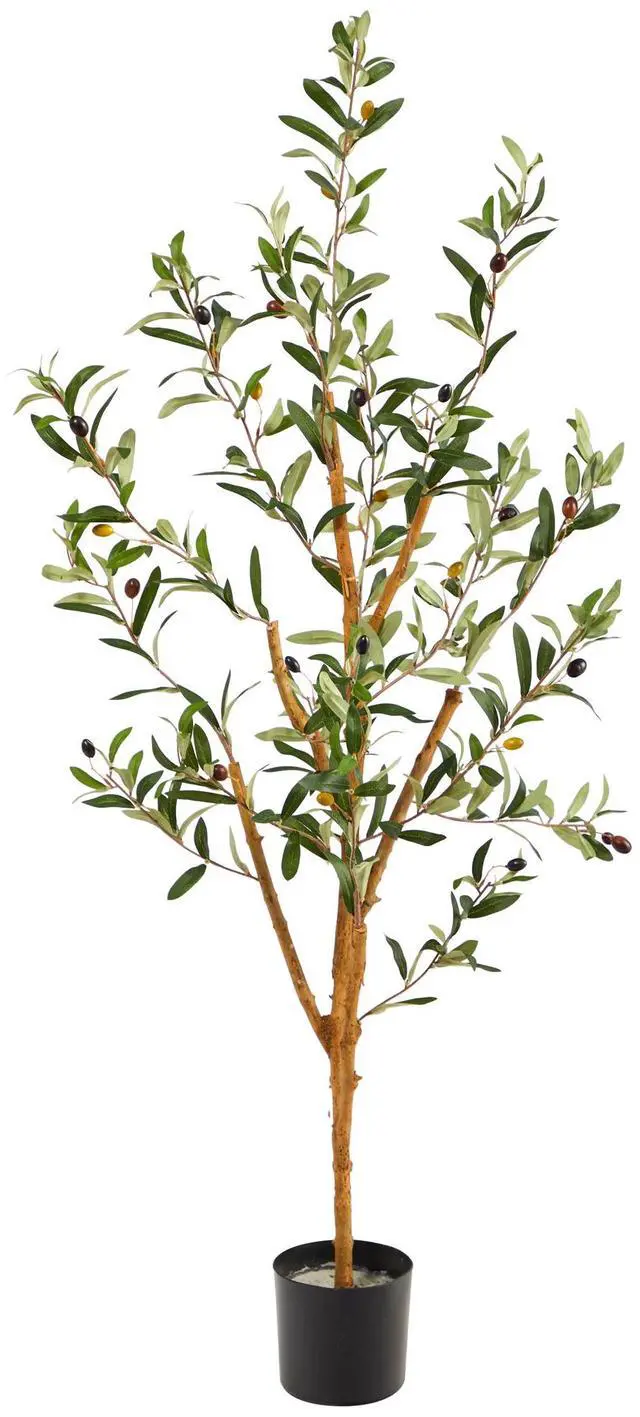 You don't have to go far to attain a vacation state-of-mind with this Olive Artificial Tree. Embrace the Mediterranean lifestyle with this skinny, elegant tree showcasing a sparse design with variegated 414 olive leaves adorned by small olives û a delicacy in the region. Standing at 3.5 ', from a black pot, customize with the planter you like and make this piece truly unique. Incredibly lifelike, easy-to-bend branches allow you to shape as you desire fit to your space. Decorate this tiny but mighty tree in your nursery, corners, or kitchen nook for an elegant, fresh touch.