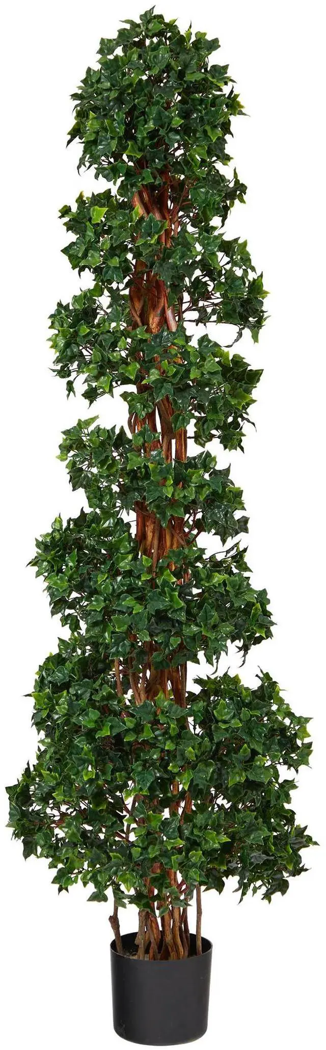 Learn how to always make a great first impression with this English Ivy Artificial Tree. Luscious green, heart-shaped leaves spiral around braided real, natural trunks, creating a marriage of traditional English charm and curb appeal. This topiary stands at 5.5 ' high and is UV resistant, so don't worry about external sun damage. Bring royalty to your space by placing them in front of the garage, main door, or the entryway.