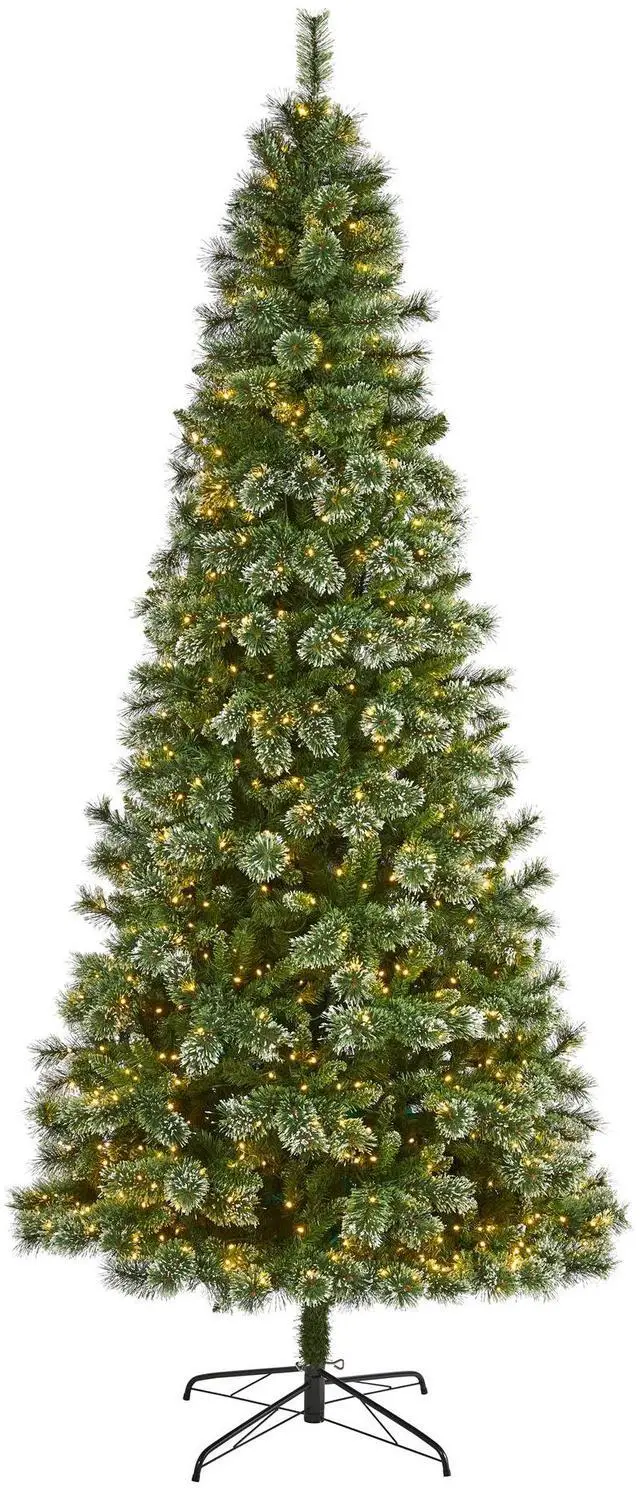 Create the ultimate holiday scene in your home or office with the help of this evergreen artificial Christmas tree; entirely maintenance-free, this realistic looking Christmas tree boasts a rich collection of pine foliage made up of 1212 easy-to-bend branches to hang all of your favorite holiday ornaments. Arriving pre-strung with 800 clear LED lights to eliminate tangles and stabilized on a metal stand, this impressive 9' tall Christmas tree will not only make holiday decorating a breeze but ensure your home is always holiday-dressed for years to come.