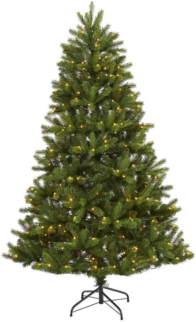 Go all out this holiday season with the help of this artificial Christmas tree! Completely maintenance-free, this realistic looking fake Christmas tree boasts a dark collection of evergreen foliage with 847 bendable branch tips to showcase your favorite decorative accents. Arriving pre-strung with 350 lights to eliminate tangles and stabilized on an accompanying stand, this impressive 6' tall artificial Christmas tree will not only make decorating a breeze but ensure your home is always seasonally attired for years to come.