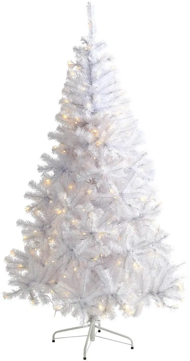 This holiday transform your home into the ultimate winter wonderland with the help of this White Artificial Christmas tree! Completely maintenance-free, this snow-white fake Christmas tree boasts an array of soft looking pine foliage with 680 bendable branches for accenting with your own personalized ornaments and holiday accents - all beautifully designed in a palette of winter white. Arriving pre-strung with 250 LED lights to eliminate tangles and carefully stabilized on a metal stand, this handsome 6' tall artificial Christmas tree will not only make holiday decorating a breeze but ensure your home is always looking picture-perfect throughout the holiday season.