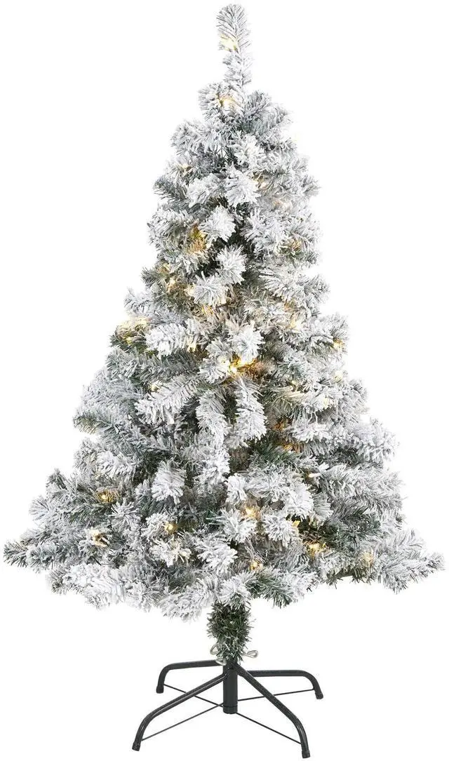 Evoke a winter wonderland this season with the help of this Flocked Rock Springs Spruce Artificial Christmas Tree. Easy to set-up and entirely maintenance-free, this winter-inspired Christmas tree boasts a rich collection of realistic looking foliage consisting of 225 easy-to-bend branches for showcasing your own personalized ornaments and holiday accents - all lightly frosted with faux snow, creating a picturesque Christmas. Arriving pre-strung with 100 clear LED lights to eliminate tangles and carefully stabilized on an accompanying stand, this versatile 4' tall frosted artificial Christmas tree will undoubtedly transform any home or office into a joyous holiday setting for years to come.