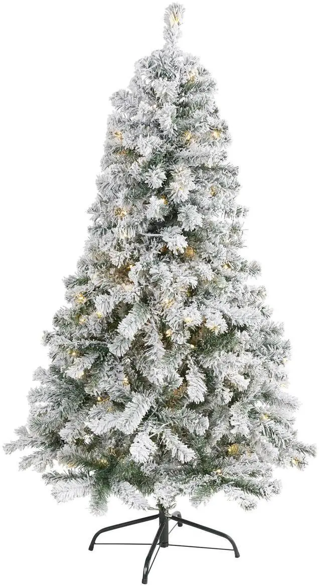 Evoke a winter wonderland this season with the help of this Flocked Rock Springs Spruce Artificial Christmas Tree. Easy to set-up and entirely maintenance-free, this winter-inspired Christmas tree boasts a rich collection of realistic looking foliage consisting of 350 easy-to-bend branches for showcasing your own personalized ornaments and holiday accents - all lightly frosted with faux snow, creating a picturesque Christmas. Arriving pre-strung with 150 clear LED lights to eliminate tangles and carefully stabilized on an accompanying stand, this versatile 5' tall frosted artificial Christmas tree will undoubtedly transform any home or office into a joyous holiday setting for years to come.