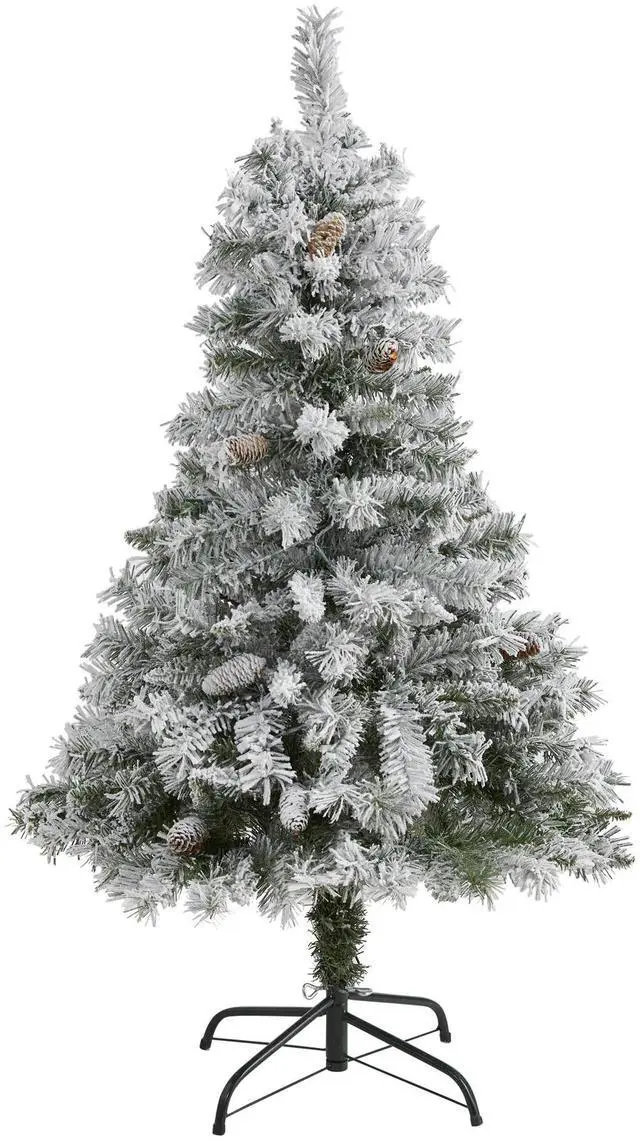 Complete a traditional Christmas setting this holiday with the help of this Flocked White River Mountain Pine Artificial Christmas Tree. Easy to set-up and entirely maintenance-free, this winter-inspired Christmas tree boasts a robust collection of realistic looking foliage consisting of 252 easy-to-bend branches for showcasing holiday accents and accented throughout with faux pinecones that look incredibly realistic. Finished with a light frosting of faux snow, it's guaranteed to create a picturesque Christmas wherever displayed. Carefully stabilized on an accompanying stand, this versatile 4' tall frosted artificial Christmas tree will undoubtedly transform any home or office into a joyous holiday setting for years to come.