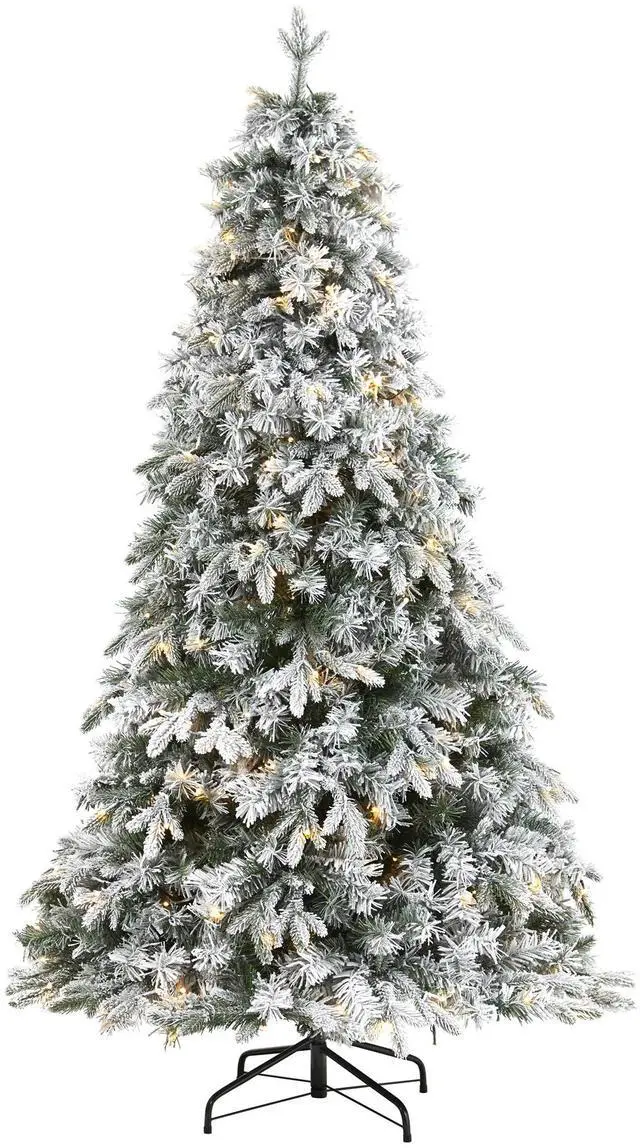 Evoke a winter wonderland this season with the help of this Flocked Vermont Mixed Pine Artificial Christmas Tree. Easy to set-up and entirely maintenance-free, this winter-inspired Christmas tree boasts a robust collection of realistic looking foliage consisting of 630 easy-to-bend branches for showcasing your own personalized ornaments and holiday accents - all lightly frosted with faux snow, creating a picturesque Christmas. Arriving pre-strung with 150 clear LED lights to eliminate tangles and carefully stabilized on a metal stand, this charming 5' tall frosted artificial Christmas tree will undoubtedly transform any home or office into a joyous holiday setting for years to come.