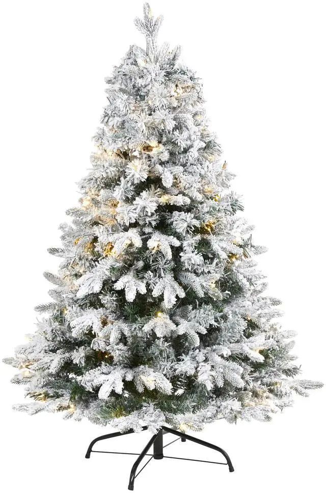Evoke a winter wonderland this season with the help of this Flocked Vermont Mixed Pine Artificial Christmas Tree. Easy to set-up and entirely maintenance-free, this winter-inspired Christmas tree boasts a robust collection of realistic looking foliage consisting of 450 easy-to-bend branches for showcasing your own personalized ornaments and holiday accents - all lightly frosted with faux snow, creating a picturesque Christmas. Arriving pre-strung with 100 clear LED lights to eliminate tangles and carefully stabilized on an accompanying stand, this charming 4' tall frosted artificial Christmas tree will undoubtedly transform any home or office into a joyous holiday setting for years to come.
