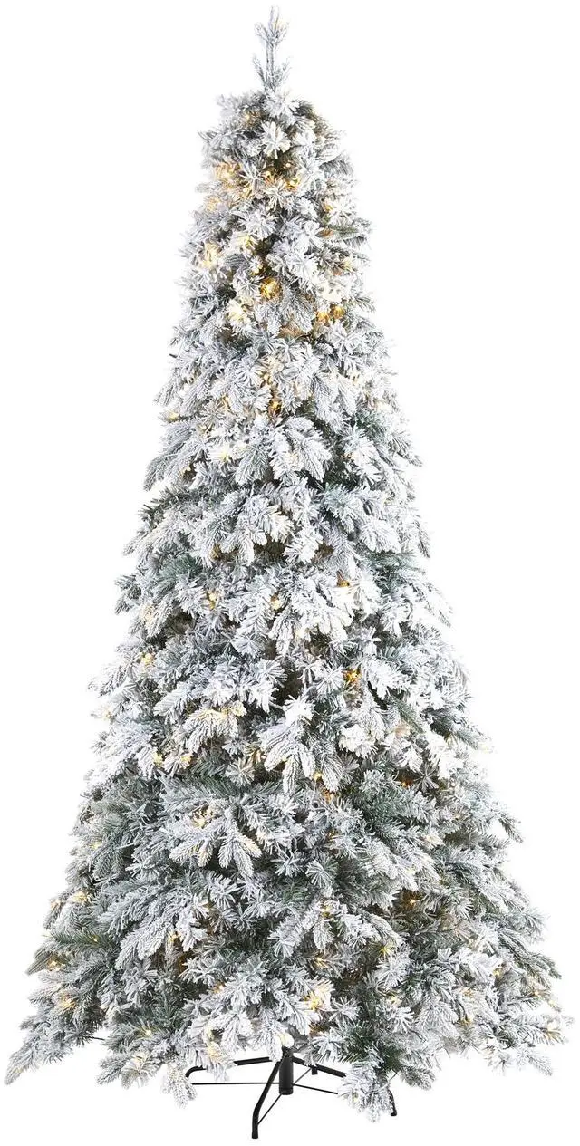Create a true, winter Christmas scene in your home or office with the help of this Flocked Vermont Mixed Pine Artificial Christmas Tree! Completely maintenance-free, this winter-inspired fake Christmas tree boasts an array of soft looking foliage, all beautifully flocked in a snow-like effect throughout its 1680 bendable branches, perfect for accenting with your own personalized ornaments and holiday accents. Arriving pre-strung with 600 LED lights to eliminate tangles and stabilized on a Metal Stand, this impressive 8' tall artificial Christmas tree will not only make holiday decorating a breeze but ensure your home is always looking picture-perfect throughout the holiday season.