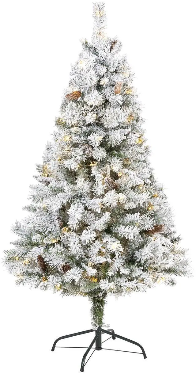 Create a picturesque Christmas this holiday season with the help of this Flocked White River Mountain Pine Artificial Christmas Tree. Easy to set-up and entirely maintenance-free, this winter-inspired Christmas tree boasts a robust collection of realistic looking foliage consisting of 360 easy-to-bend branches for showcasing holiday accents and accented throughout with faux pinecones that look incredibly realistic; it comes finished with a light frosting of faux snow to evoke the ultimate winter wonderland. Arriving pre-strung with 150 clear LED lights for stress-free decorating and carefully stabilized on an accompanying stand, this versatile 5' tall frosted artificial Christmas tree will undoubtedly transform any home or office into a joyous holiday setting for years to come.
