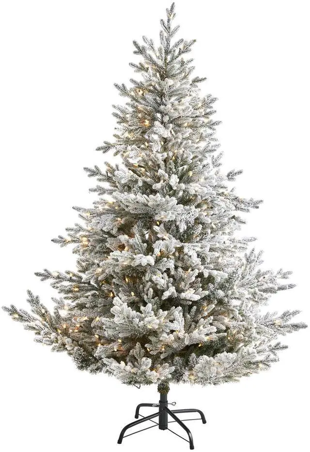 Create your own winter wonderland scene even in a limited space environment with this flocked artificial Christmas tree. Easy and effortless, this winter-inspired artificial Christmas tree boasts a traditional silhouette of realistic looking evergreens made up of 2536 easy-to-bend branches for showcasing your own personalized ornaments - all fully flocked with faux snow to create a picturesque Christmas. Arriving pre-strung with 500 clear LED lights to eliminate tangles and stabilized on a metal stand, this flocked 6' tall artificial Christmas tree will undoubtedly transform any tight space into a joyous holiday setting for years to come.