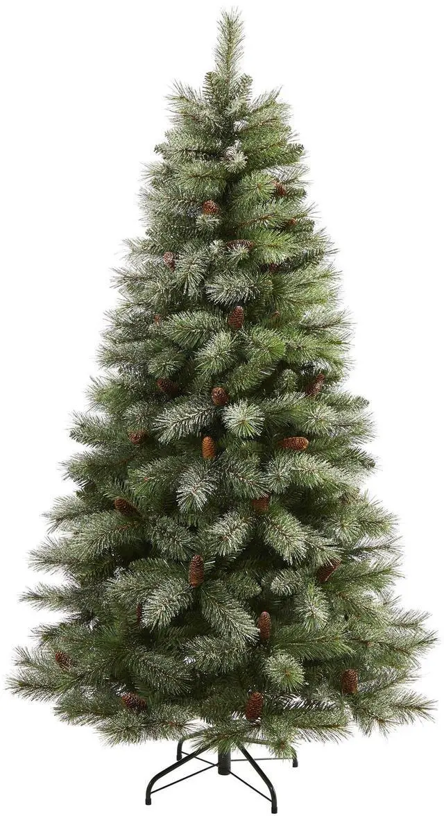 Incorporate hints of a winter wonderland this holiday season with the help of this snowy artificial Christmas tree! Completely maintenance-free, this winter-inspired fake Christmas tree boasts tiers of soft looking foliage made up of 583 easy-to-bend branch tips for showcasing with your own holiday ornaments and accented throughout with faux pinecones that look incredibly lifelike. Dusted throughout with a light frosting of faux snow to evoke the ultimate winter setting and carefully stabilized on a metal stand, this enchanting 6' tall snowy artificial Christmas tree will not only make holiday decorating a breeze but ensure your home is always holiday-dressed for years to come.