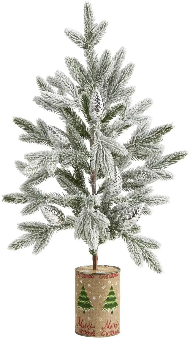 Evoke hints of the season no matter the space restriction with the help of this flocked artificial Christmas tree. Easy to set up and entirely maintenance-free, this timid little faux tree features a naturally sparse-like design with slender bendable branches for easy decorating and finished with a frosting of faux snow to evoke a winter-inspired setting. Standing just over 28' tall and carefully stabilized in a decorative planter, this flocked artificial Christmas tree would undoubtedly make a stunning addition to any winter decor scheme.