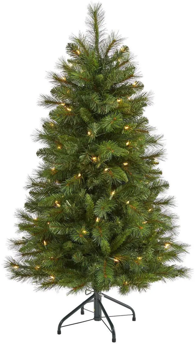 Evoke a sense of the holiday spirit even in the tightest spaces with the help of this artificial Christmas tree! Completely maintenance-free, this traditional looking artificial Christmas tree boasts a narrow silhouette of seasonal evergreens, made up of 322 bendable branch tips, perfect for accenting with your own personalized ornaments. Arriving pre-strung with 100 clear LED lights to eliminate tangles and carefully stabilized on a metal stand, this versatile 4' tall artificial Christmas tree will not only make decorating a breeze but ensure your home is always seasonally attired for years to come.