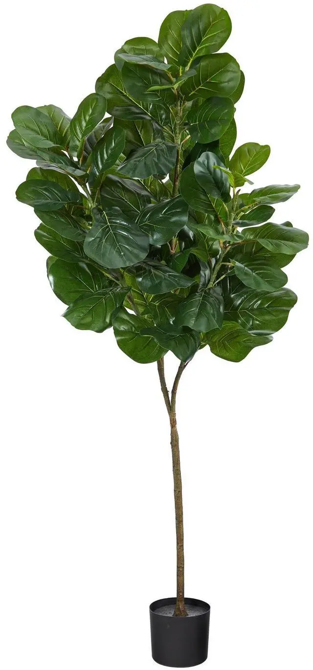 The trendiest tree from the brunch gets the worst rep, and for a good reason, if you tried growing a Fiddle Leaf Fig, you know the struggle. Luckily, you can trick all your friends into thinking you can maintain one with this Artificial Fiddle Leaf Fig. Large, glossy leaves stem from a thin brown trunk, delivering green jungle faux-liage. Standing 6', from a black nursery planter (included in height), curate in spaces that need a little greenery. Perfect for living areas, bedrooms, bedsides, or bathrooms.