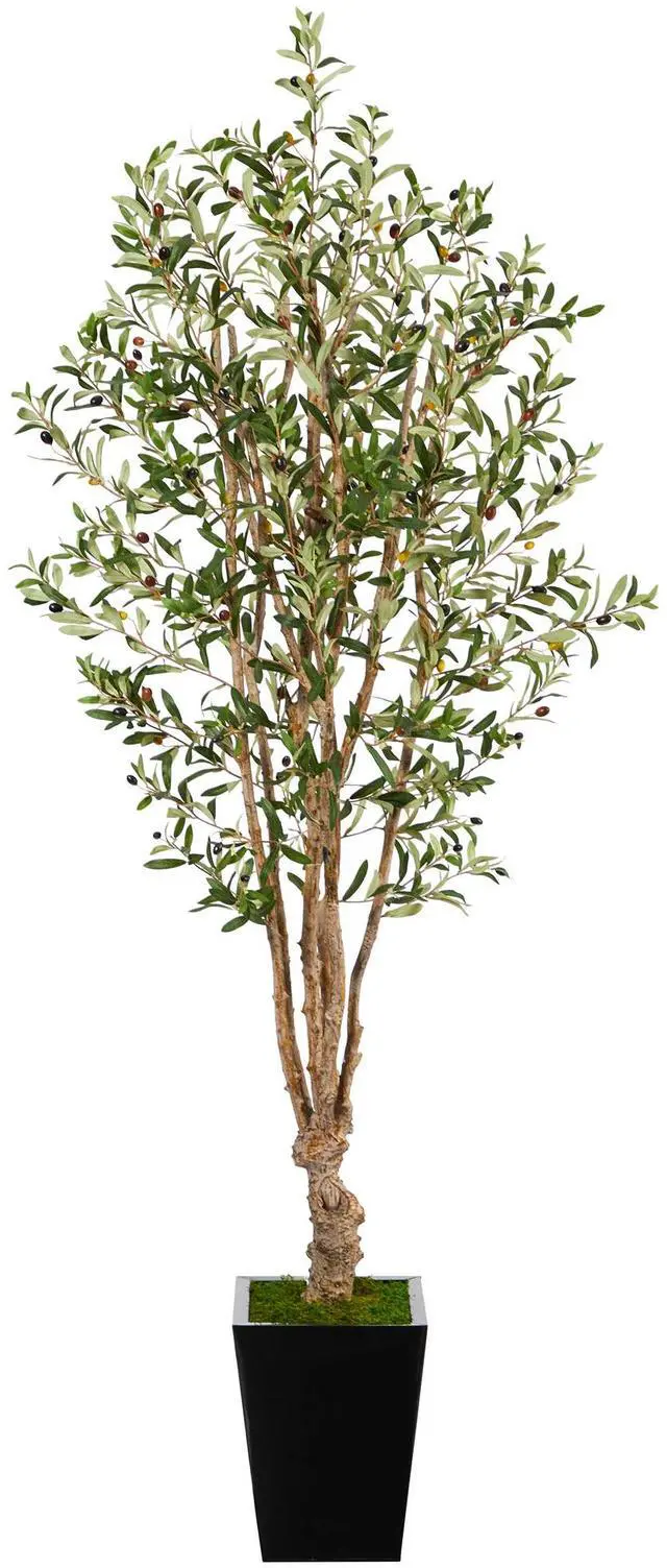 Do you dream of relaxing days along the Mediterranean? You can now escape the hustle and bustle of daily life with this Artificial Olive Tree. With a thick trunk that showcases variegated olive leaves adorned by faux olives, we guarantee you'll try to eat these. This rustic fake tree stands 6.5 ' from a black metal planter (included in height) and is perfect for spaces in need of a refresh. Place in apartments, offices and bathrooms and elevate your space.