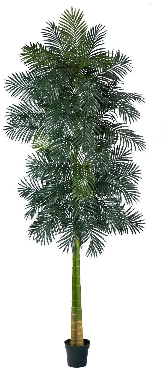 Bring a slice of paradise into your home. Make summer last faux-ever with this Double Cane Artificial Palm Tree. Inspired by tropical beaches and crafted from premium materials, place this tall faux palm tree in any space with high ceilings. Verdant leaves sprout from two lifelike trunks with naturally occurring details for a jungle, leafy look û without the maintenance. Feel free to shape the 40 bendable branches as you wish. Standing 10' from a black nursery planter, DIY and add a vessel of your choice. Perfect for a living room, home office, or lonely corner in a foyer.