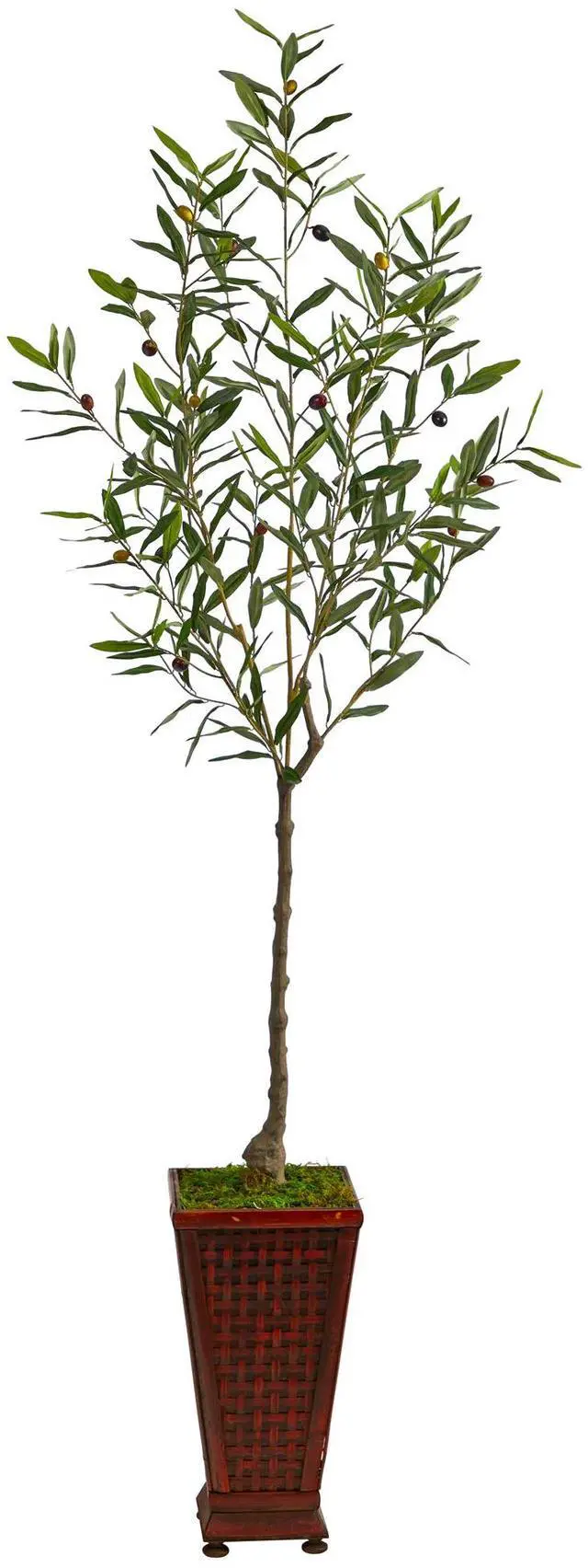 Cure your Italian wanderlust with this Olive Artificial Tree that will make all your Mediterranean dreams come true. Green olive leaves adorn the delicate stems that are accented by faux olives, so realistic you'll want to eat them. Best of all? Zero Maintenance! This rustic faux olive tree stands 69" from a decorative planter (included in height), a Bello addition for tight spaces. Place in apartments, low ceiling rooms or bathrooms and instantly transform your space.