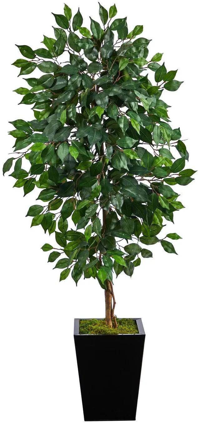 Elevate your home with a delicate and elegant Ficus Artificial Tree. Glossy ficus leaves stem from a thin natural looking light brown trunk and deliver a bold yet airy look. Standing at 5', from a black metal planter (included in height), curate in compact spaces or lonely corners. Perfect for apartments, bathrooms, kitchen nooks or kids' rooms. Complements many dTcor styles.