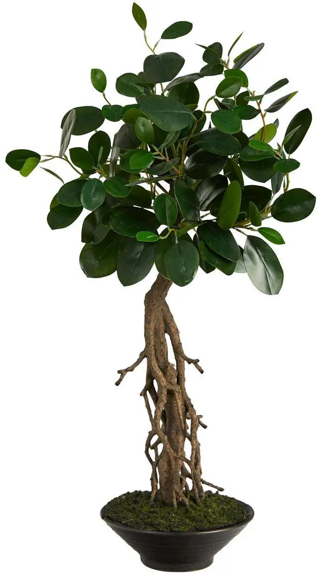 Love the Ficus? Bring it to your desktops with this Ficus bonsai artificial tree. If you've wanted the airy yet full look of the Ficus in a mini version, you can't go wrong with this choice. Crafted from high-quality materials, brighten any space in need of some color and charm. Best of all? Zero maintenance! Standing 2' from a decorative planter (included in height), with faux moss, house in any desktop. Perfect for a desk, mantel, night stand and makes a great gift.
