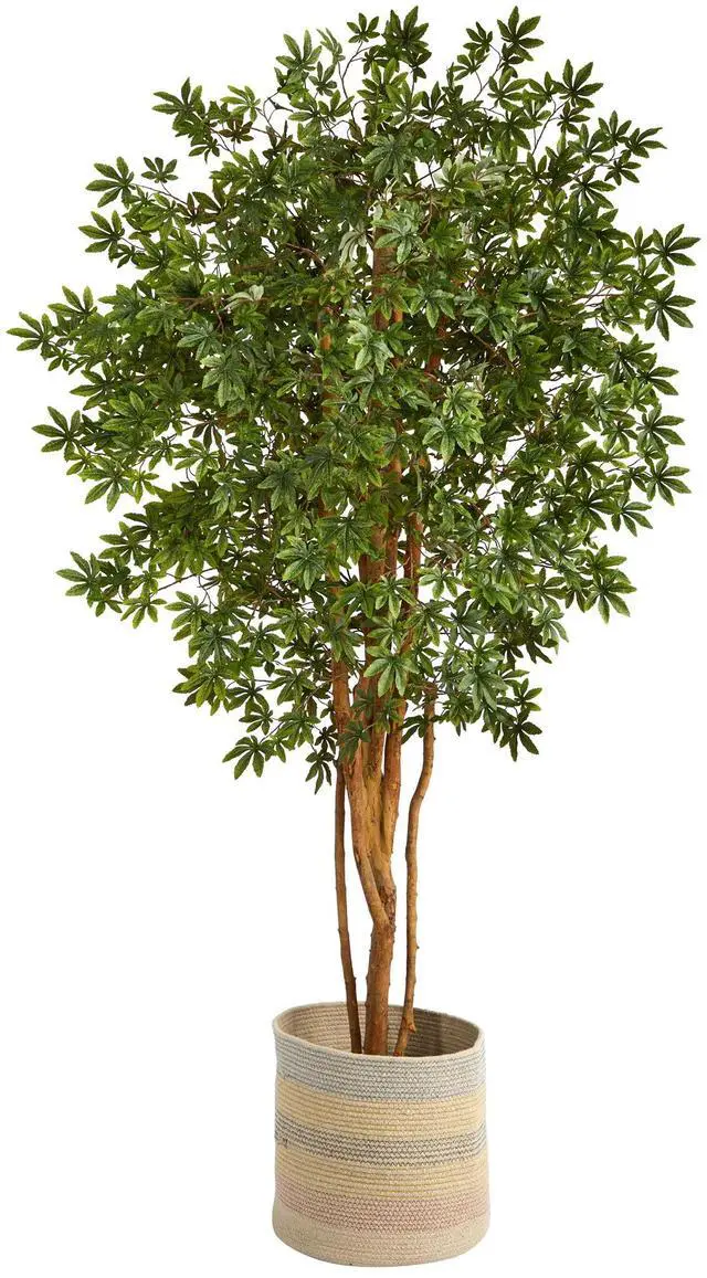 Have an empty corner? Fill bare spaces with this Japanese Maple Artificial Tree. Inspired by nature and crafted from high-quality materials, transform your rooms into a jungle with green foliage. The dense, thick leaves stem from thin brown trunks. Standing 6' from a cotton planter (included in height), curate in any space in need of green. Perfect for a lonely corner, living room or bedroom.