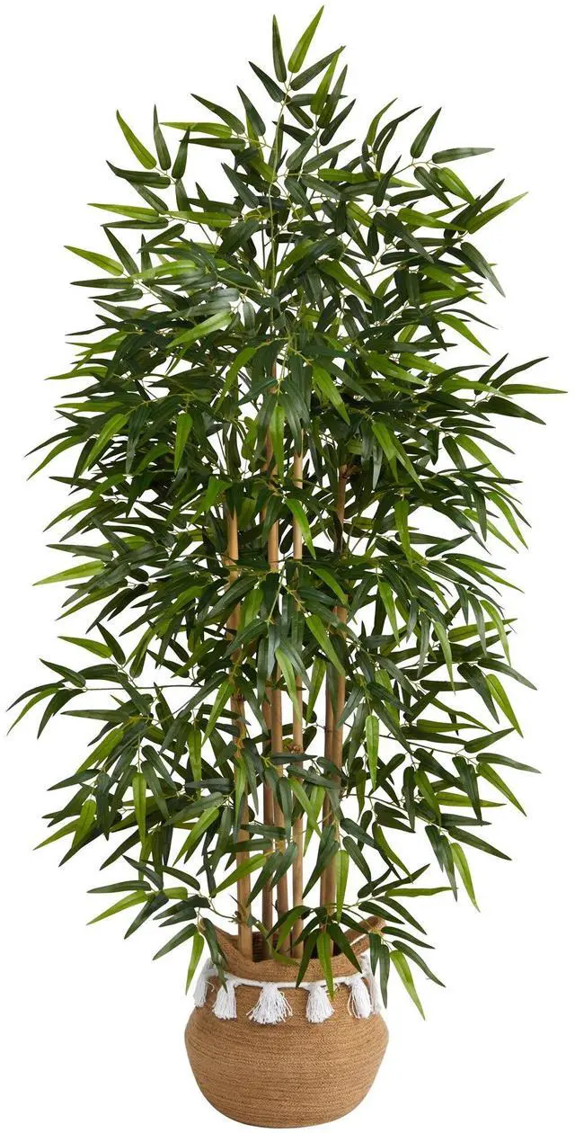 Crave a Tulum trip? Create a tropical jungle in your space with this Bamboo Palm Artificial Plant native to Central America and Mexico. With naturally occurring details throughout the bamboo fronds and stems, the full look brings green foliage similar to their real counterparts. Standing 64" from a boho chic planter, curate in narrow spaces. Perfect for compact areas like apartments, awkward corners, bathrooms, or living rooms.