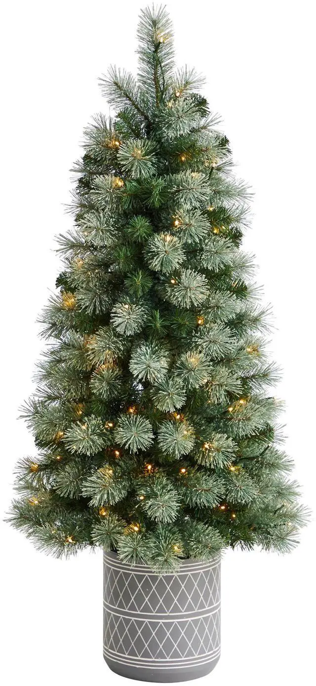 Create your own mini Christmas wonderland and rock around with this Artificial Christmas Tree. Incredibly lifelike textured branches mimic real evergreens for a sturdy construction. This pre-lit artificial Christmas tree comes with 120 LED lights and has upward-sloping branches û allowing you to decorate with mini-ornaments of your choice easily. Standing 4.5 ' from a geometric stone planter, this tree requires zero maintenance, just some fluffing and shaping that's easy with the bendable branches! Decorate as a trio with other trees or in your kids' room, kitchen, apartment or other compact spaces.