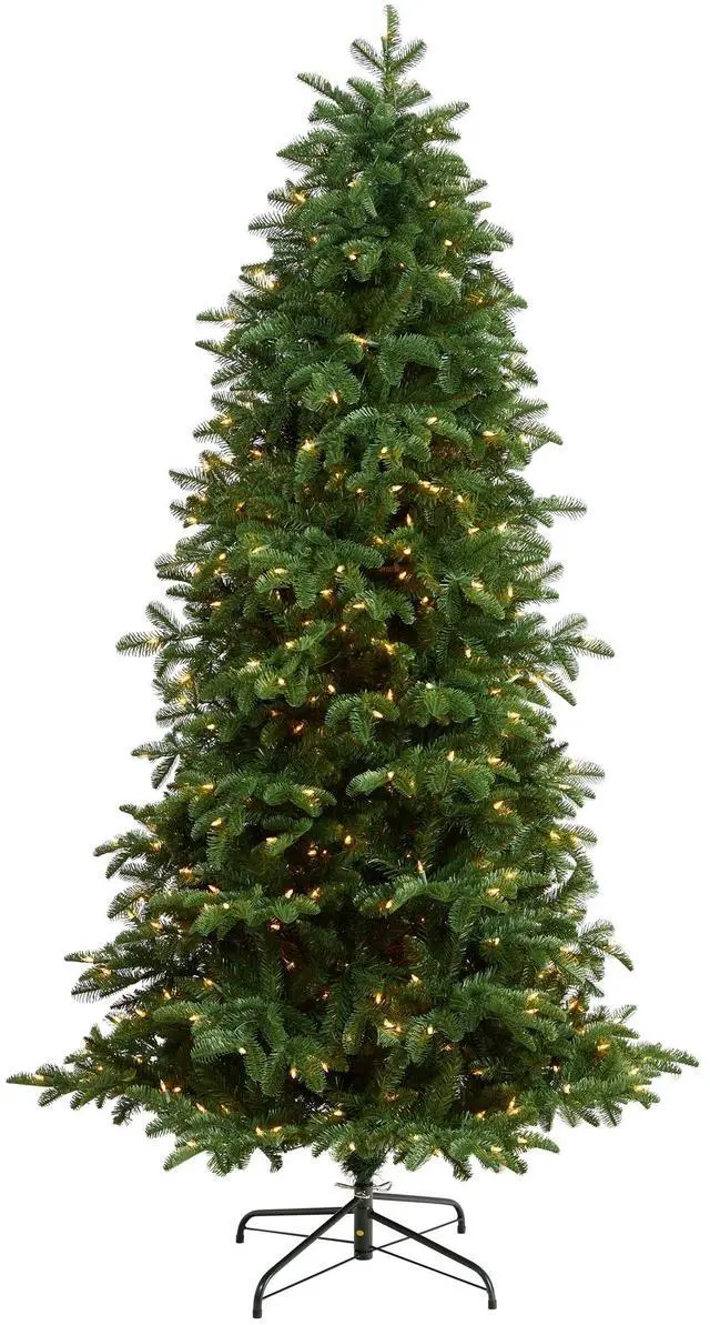 Create a traditional holiday scene in your home or office with the help of this artificial Christmas tree! Completely maintenance-free, this realistic looking fake Christmas tree boasts a tight silhouette of seasonal evergreens made up of 2078 bendable branch tips for decorating with your own personalized ornaments. Arriving pre-strung with 550 clear LED lights to eliminate tangles and carefully stabilized on a metal stand, this handsome 7' tall artificial Christmas tree will not only make decorating a breeze but ensure your home is always seasonally attired for years to come.