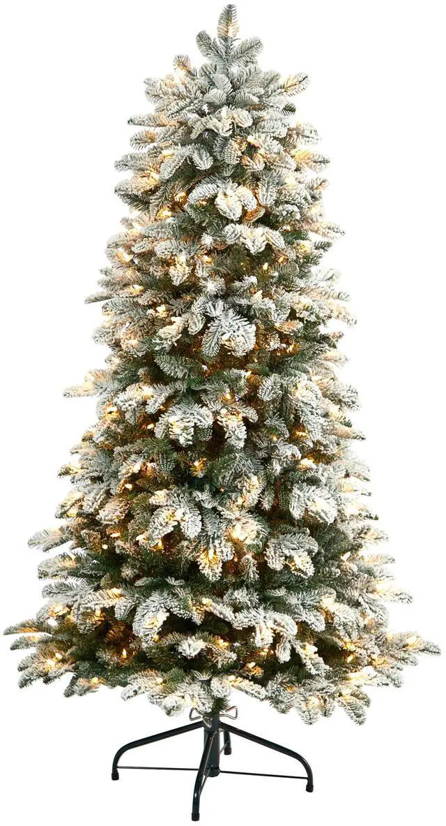 Create a winter-inspired Christmas scene without the hassle of upkeep or maintenance with the help of this flocked artificial Christmas tree. Perfect for tight, narrow spaces because of its slim silhouette, it boasts evergreen foliage made up of 1247 easy-to-bend branch tips for showcasing your favorite holiday ornaments- all fully flocked with faux snow to create a Pinteresque Christmas. Arriving pre-strung with 350 warm white lights to eliminate tangles and carefully stabilized on a metal stand, this flocked 5' tall artificial Christmas tree will not only make decorating a breeze but ensure your home is holiday-ready for years to come.
