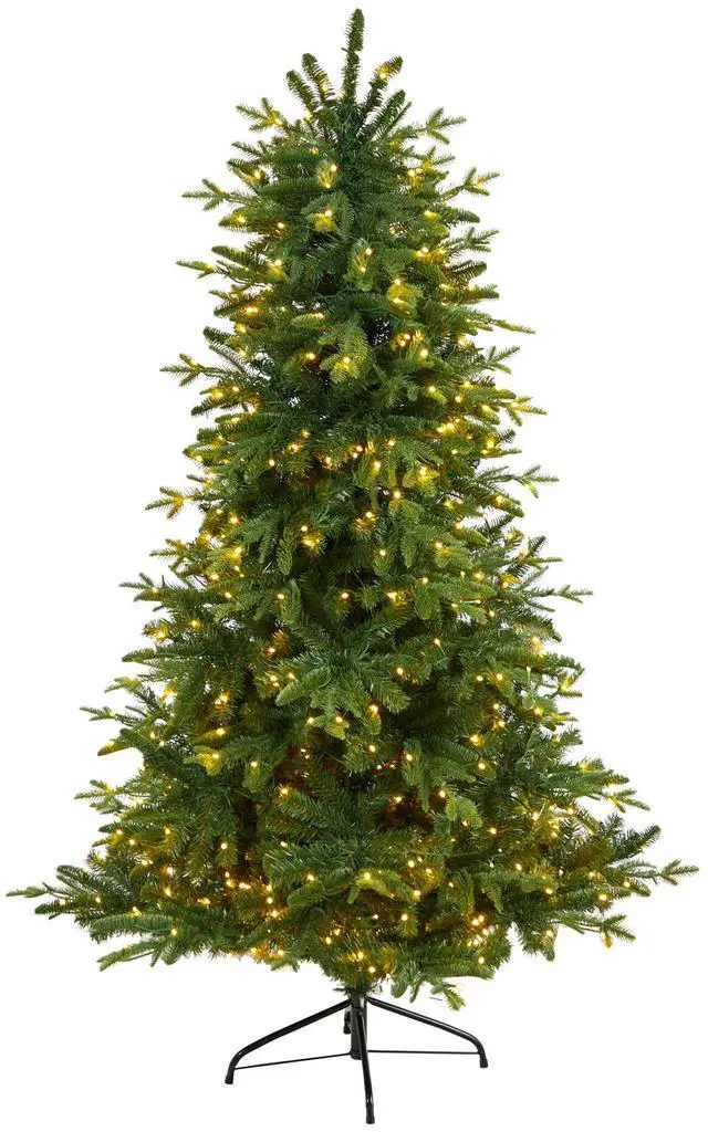 Bring the best of Canada to your home with this Montreal Spruce Artificial Christmas Tree. Incredibly lifelike, this artificial tree is a nod to its natural counterparts and mimics the texture and foliage. Featuring 1029 upward sloping, easy-to bend branches û showcase your favorite holiday decorations and shape as you wish. Arriving pre-strung with 450 warm white LED lights, set your home aglow all while saving time and money. Standing at 6' and stabilized in a metal stand, curate in compact spaces that need some Christmas cheer. Perfect for kids' rooms, kitchen nooks, or apartments.