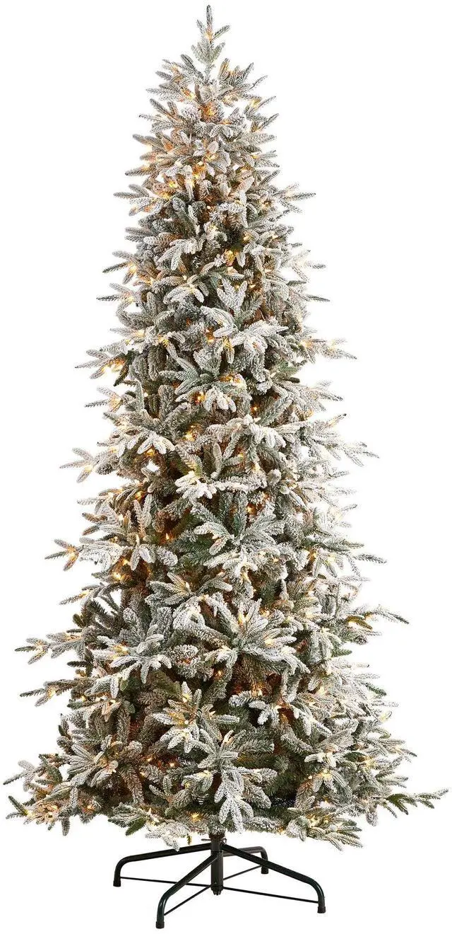 If you're dreaming of a white Christmas, look no further, this flocked Manchester Spruce Artificial Christmas Tree makes your wish come true. Designed to mimic real evergreen foliage and texture, this artificial Christmas tree features 1733 easy-to-bend branches û allowing you to decorate with your mini ornaments. Pre-strung, with 650 lights, for a cozy feel - save time and money. Standing at 9.5 ' from a metal stand (height includes stand), make a Christmas statement, wherever you curate. Its size makes it perfect for spaces with tall ceilings.