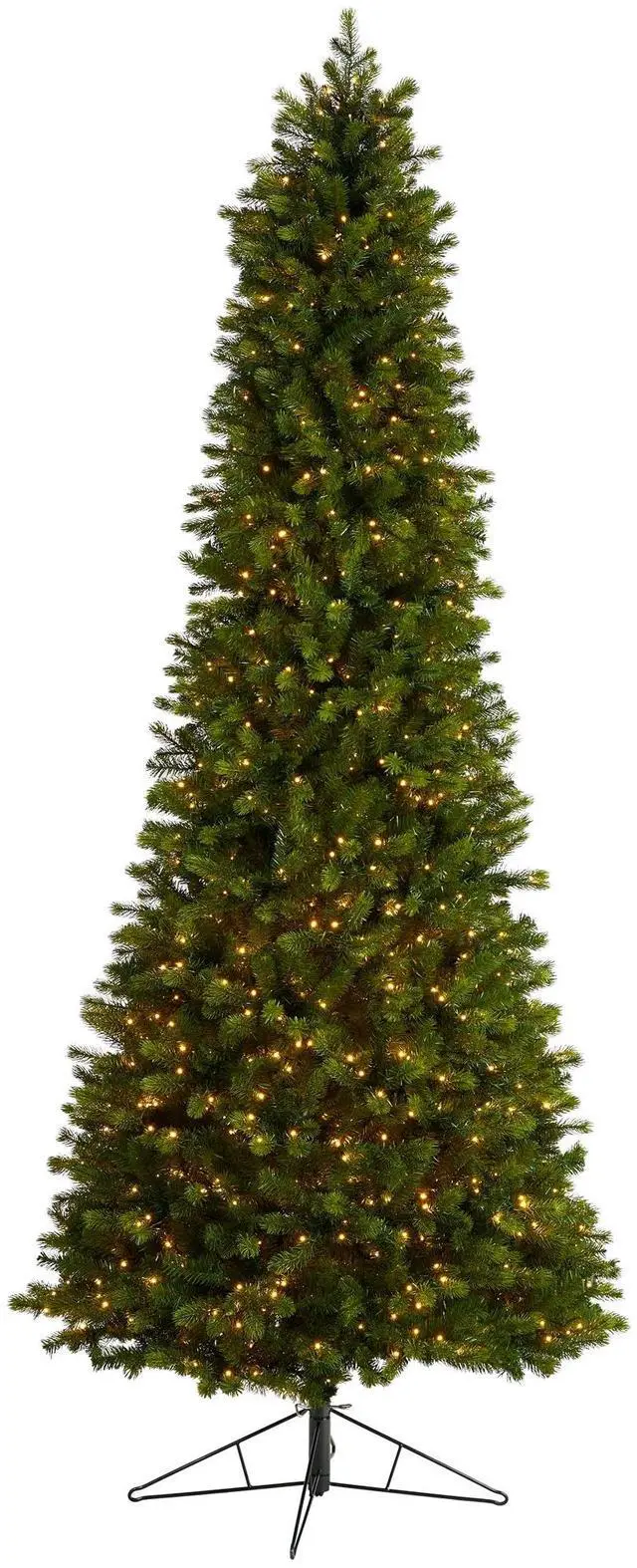 Create a traditional evergreen setting even in the tightest spaces with the help of this artificial Christmas tree. Entirely maintenance free, it features a tight, slimming silhouette made up of mountain greenery with 2528 easy-to-bend branches for showcasing all your holiday ornaments and decorative accents. To eliminate unsightly messes, it already comes pre-strung with 1400 warm white micro LED lights (multifunction with remote control); best part, it's specifically designed with Instant Connect