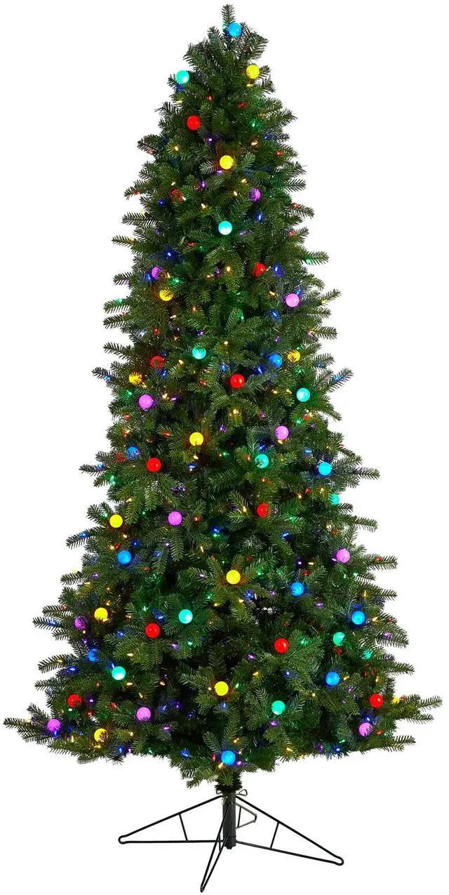 Light up your home this holiday season with the help of this artificial Christmas tree. Easy to build and entirely maintenance-free, it boasts a traditional silhouette of seasonal evergreens, made up of 1762 easy-to-bend branches, perfect for showcasing all your favorite holiday ornaments. Arriving pre-strung with 800 multicolored LED lights, 100 globe lights and carefully stabilized on a metal stand, this festive 8.5 ' tall artificial Christmas tree will undoubtedly be a focal point throughout the holidays, year after year.