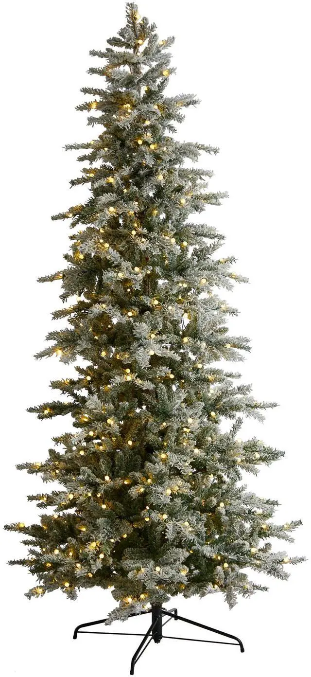 Create your own White Christmas this holiday season with the help of this flocked artificial Christmas tree! Completely maintenance-free, this winter-inspired fake Christmas tree boasts various tiers of soft looking foliage made up of 1061 easy-to-bend branch tips for accenting with your own personalized ornaments and holiday accents and finished with a light dusting of faux snow to evoke a winter setting. Arriving pre-strung with 500 LED lights to eliminate tangles and carefully stabilized on a metal stand, this enchanting 8.5 ' tall frosted artificial Christmas tree will not only make holiday decorating a breeze but ensure your home is always holiday-dressed for years to come.